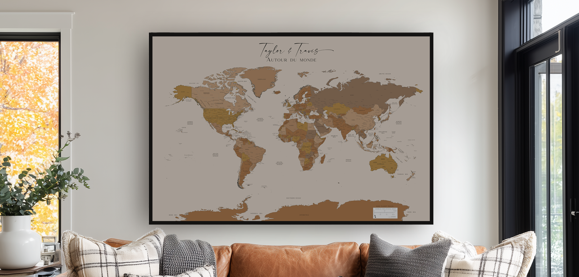 3 | Hang on your wall your custom meaningful map, display all your travel achievements and add inspiring destinations to your bucket list!