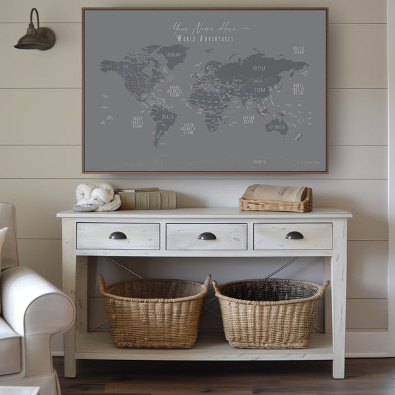 Cette carte du monde sur mesure est une œuvre d'art unique, faite à la main, et est inspirée de Cape Town, Afrique du Sud. Elle est créée sur commande, personnalisée à la main et peut compléter n'importe quelle décoration intérieure. La carte est une œuvre d'art durable et de haute qualité - un investissement que vous chérirez comme une belle pièce maîtresse pour mettre en valeur vos aventures.