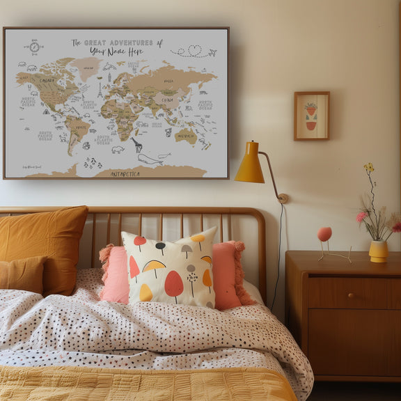 Cette carte personnalisée pour votre enfant est une œuvre d'art unique et faite à la main, inspirée de la Great Ocean Road, en Australie. Elle est créée sur commande, personnalisée à la main et peut compléter n'importe quelle décoration de chambre ou de salle de jeux.