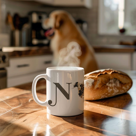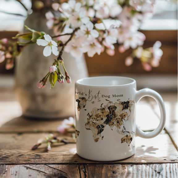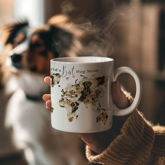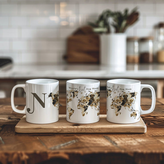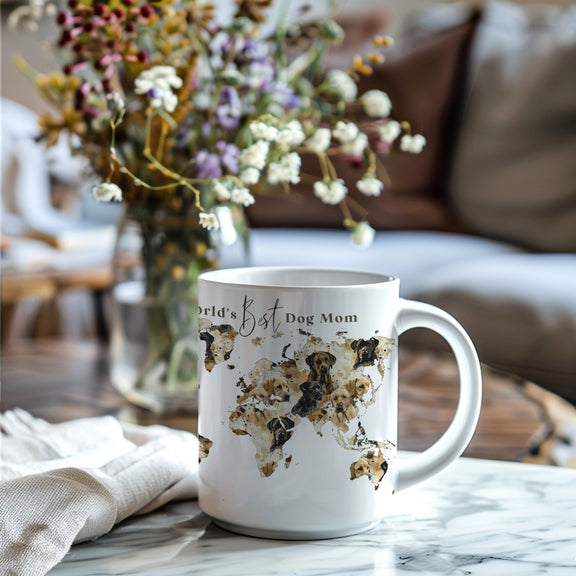The mug is glossy white, and retains its quality and luster when used in both microwaves and the dishwasher.