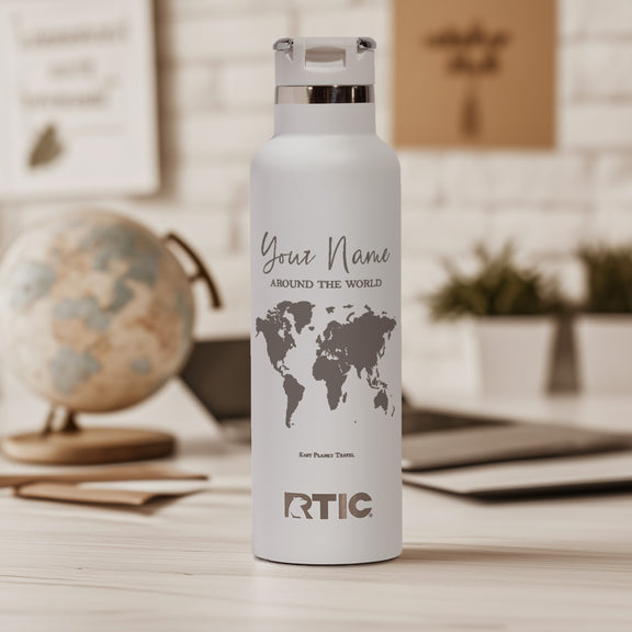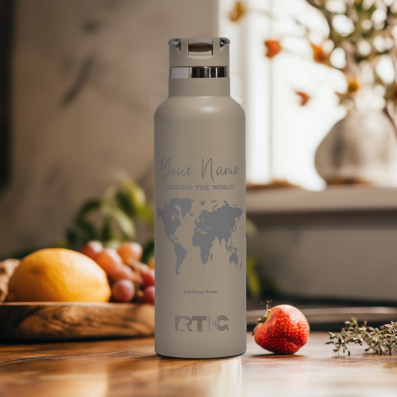 Stay hydrated in style! Personalized with your name, and laser etched to reveal the stainless steel material underneath the colourful coating.