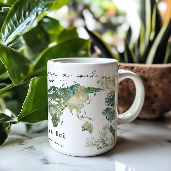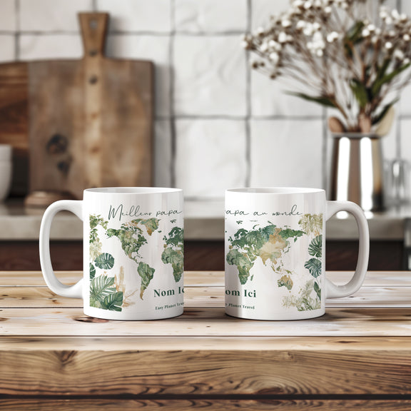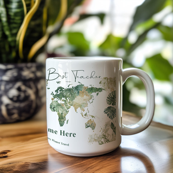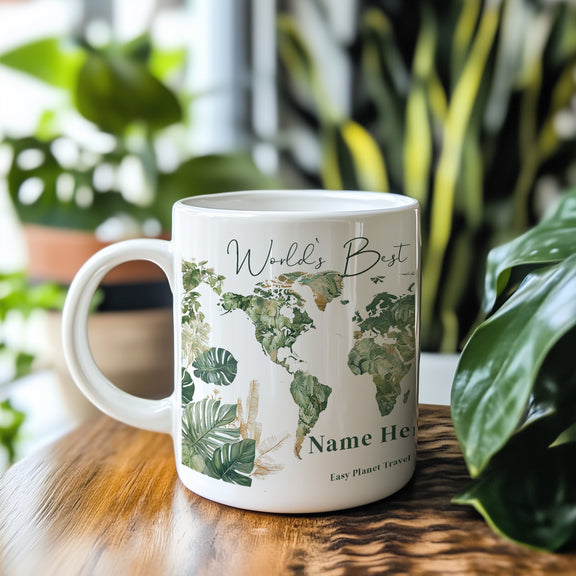 Say 'I Love You' or 'Thank you!' with an inspiring world map mug, perfect for coffee or tea! Customize it with the name and role the recipient has in your life, or with your favorite quote.